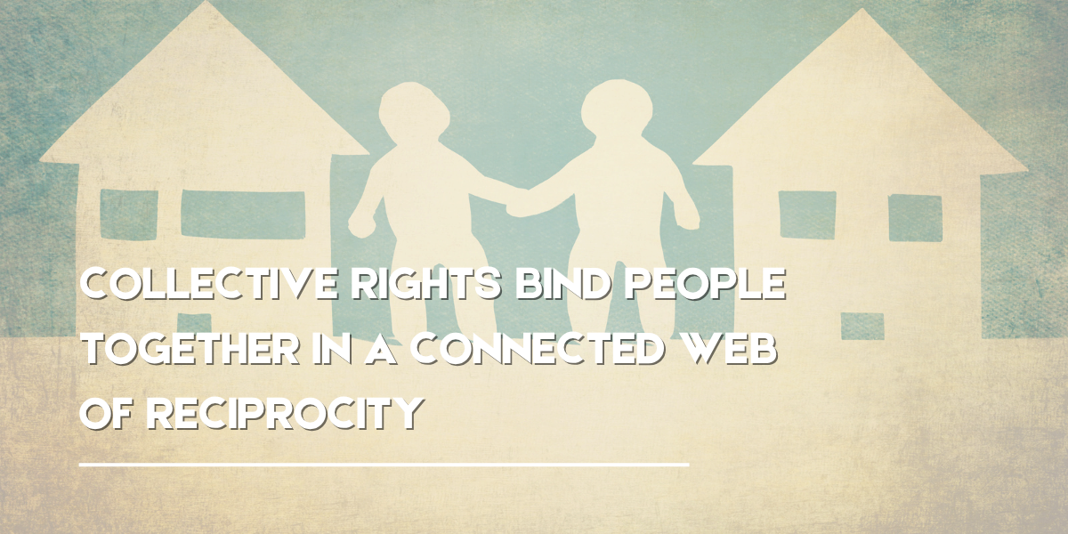 The idea of having rights held in common with other neighbors both human and the wider natural world is expressed in the U.N. Declaration of the Rights of Indigenous Peoples Article 7 that says that Indigenous peoples have the “collective right” to live in freedom, peace and security. Collective rights bind people together in a connected web of reciprocity: if our health is dependent on the health of the Earth and that of our next-door neighbor, then theirs is also dependent on ours. It is this sense of reciprocity that can guide our individual medical choices.